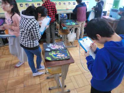 友だちの作品を鑑賞し合い,色の映え方や