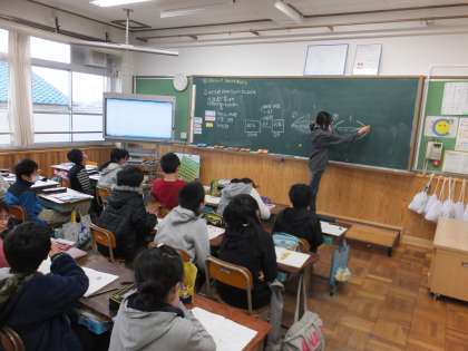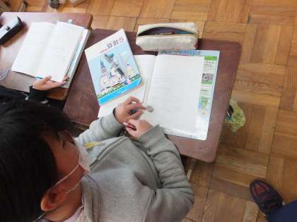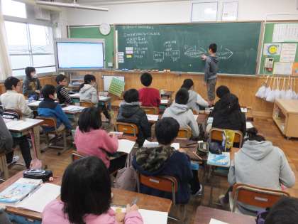 5年生の算数科の学習で,割合の学習を進めています。今までは問題の中に出てくる割合を使って計算していましたが,この日の学習は,もとのねだんの10%引きの代金を求める問題でした。割合を足したり引いたりする問題に戸惑う子どももいましたが,子どもたち同士で説明し合う中で,考え方を理解することができてきました。