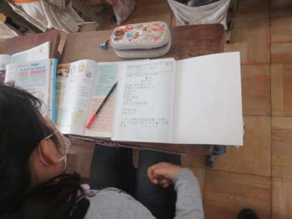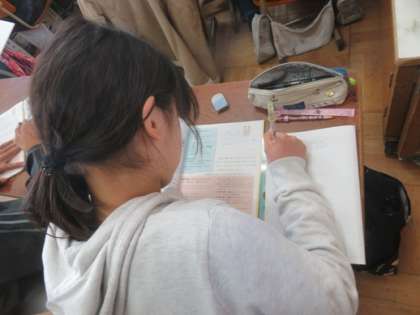 社会科の学習で内閣の働きについて調べました。内閣では,内閣総理大臣が中心となって,予算や法律にそって,実際に政治を行っていることや内閣のもとで,省や庁が実際の仕事を分担して受けもっていることについて学習しました。そして,内閣の働きについて調べてわかったことをもとに30字程度の一文で書きました。