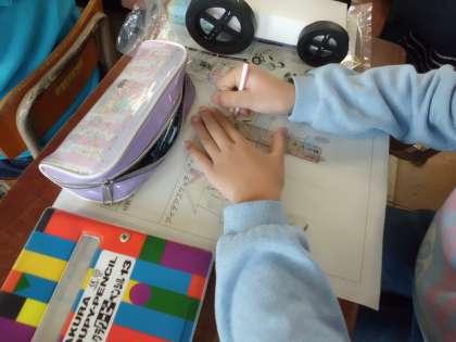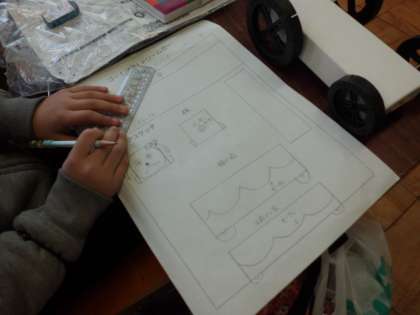 図画工作科「ゴー!ゴー!ドリームカー」では,あったらいいな,乗りたいなと思う車をイメージしました。材料を組み合わせながら,完成した形を考え,スケッチに起こす子どもたちでした。