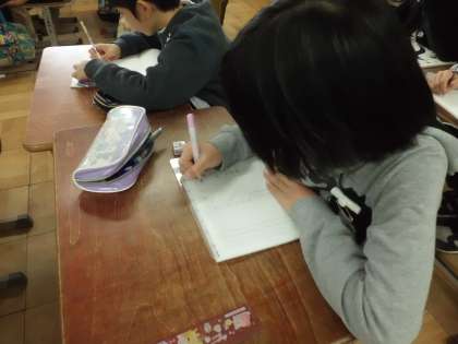 国語科「大事なことを落とさずに聞こう」では,メモの取り方の工夫を考えます。まずは,今の自分たちのメモの力を知るために,CDを使って聞き取りをしてみました。一人一人のメモの方法をクラスで共有し,工夫をまとめました。さあ,この工夫を使って再チャレンジ!