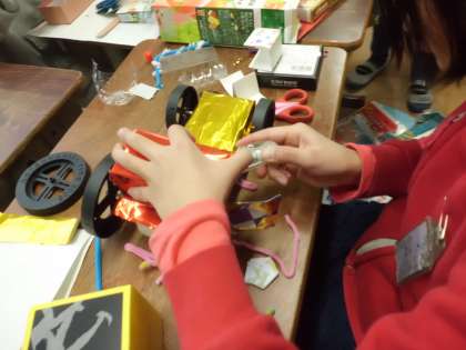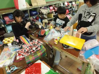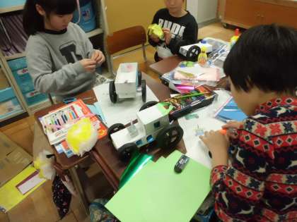 図画工作科「ゴー!ゴー!ドリームカー」では,スケッチにした車を実際の形にしていきました。途中で走らせたり,更なる組み合わせを考えたりして,よりよい作品を目指して作り上げていく子どもたち。スケッチ通りの作品になっているものやスケッチよりもすてきな作品になっているものもありました。ぜひ,造形展にお越しください!