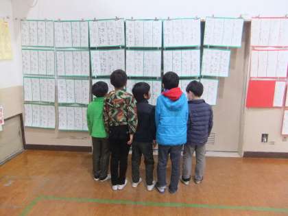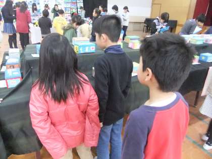 子ども達は,色々な学年の作品をじっくりと見ていました。