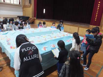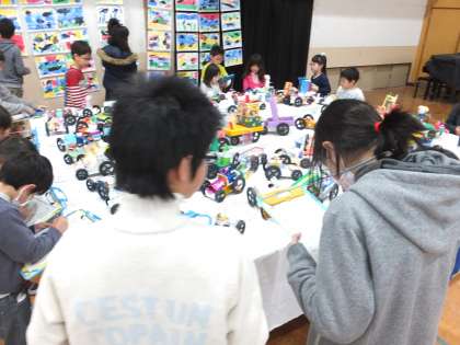 校内造形展では,2年生,4年生,6年生の立体作品が展示されました。2年生や4年生は本物のようなケーキやきれいな飾り付けがされた車がとても上手でした。6年生の卒業制作は,来年自分達もどんな風に作品を作ろうかなぁと考えながらじっくり鑑賞をしていました。