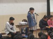 吉祥院タイムの今回の発表は6年生でした。前半の3人は「笑顔をうみだす方法」「あこがれている職業」「わたしの目標の人」について話しました。全校生徒を前に堂々と発表していました。