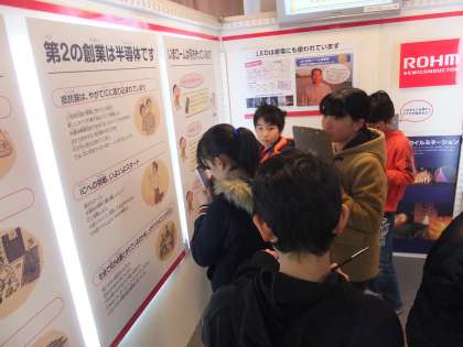 先ほどのローム株式会社を始め,京都にゆかりのあるたくさんの企業の創設者の思いや,製品が生まれるまでの工夫,モノづくりの歴史など,興味のあるブースをじっくりと見学していきます。