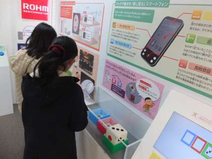 殿堂学習では,企業の製品を実際に触って体験することもできました。モーターを作る会社や,タッチパネルを作っている会社,顔認証システムを作った会社等,楽しみながら企業の製品を知ることができました。
