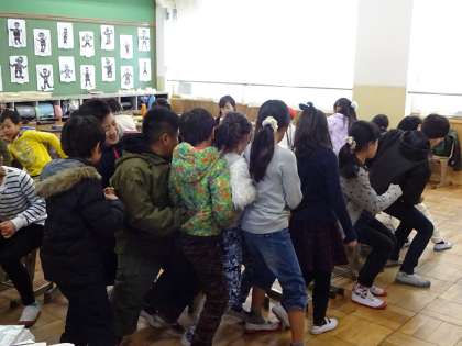 1年間を通して,グループの中で顔や名前を覚え,声をかけあって準備をしたり,ゲームが中断した時もお互いに譲り合う様子が見られました。