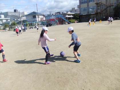 2回目の練習なので,少しずつボールに慣れて,ゲームの進め方が上手になってきています。