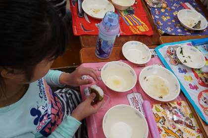 子どもたちは朝から,「早く食べたい!」ととても楽しみにしていました。中には苦手だなと思っている子もいたようですが,食べてみると「とってもおいしい!」と喜んでたべていました。