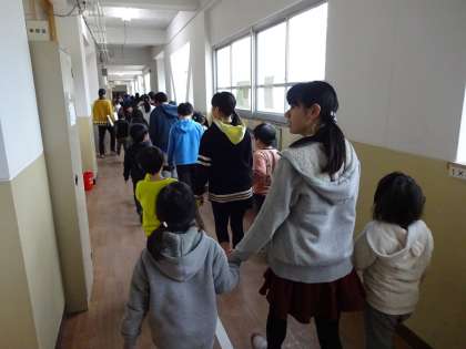 4月に行われた1年生を迎える会では,6年生が1年生と手をつないで入場していましたが,今回は1年生が6年生をエスコートして入場しました。