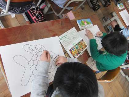 子ども達は,色々な色を使って,素敵に魚を完成させました。