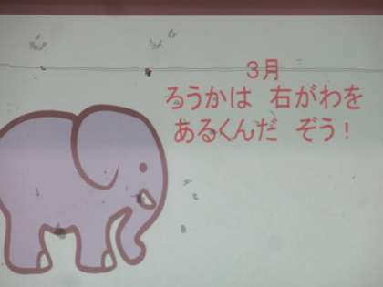 3月の生活目標は,「ろうかは 右がわを あるくんだ ぞう!」です。今年一年間頑張って取り組んでいる目標の一つ,安全にかかわる生活目標です。子ども達が,安全に過ごせるよう取り組んでします。