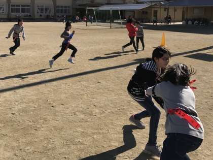 しっぽ取りでは,一人で相手の陣に突っ込みかきまわす子,何人かで協力して相手を崩そうとする子など,様々に楽しむ様子が見られました。