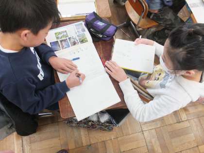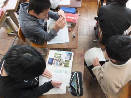 国語科の学習で物語作りに取り組んでいます。1枚の写真から想像を広げ,表現を工夫しながら物語を書いていきます。