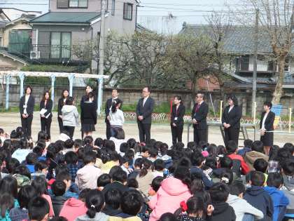 4月11日(火)着任式と始業式,入学式が行われました。着任式では,代表の新6年生3名が,新しく着任される先生たちへのお迎えの言葉を堂々と発表することができました。