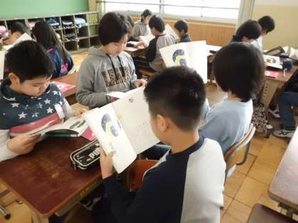 国語科では,教科書のはじめのページに書かれている「銀河」の詩を読みました。声や姿勢をそろえることを意識して何度も読むことで,上手になっていきました。