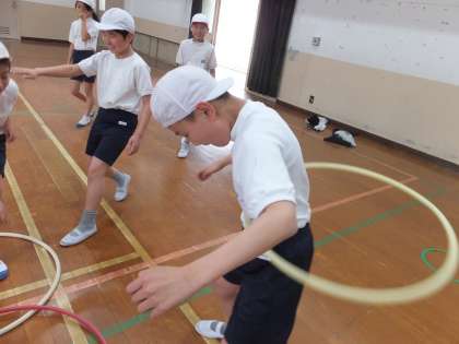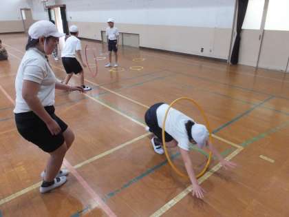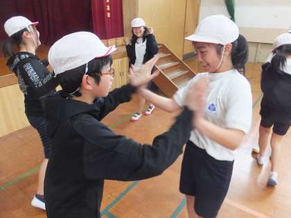 6年生の体育の学習で,体ほぐしの運動を行いました。自分の体や心をほぐすために,ペアで活動をしたり,班で活動をしたりする中で,友だちとかかわりながら楽しく学習することができました。