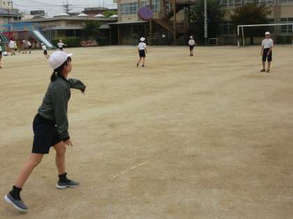 今日は,はさみおにやフリスビー投げを行いましたよ。