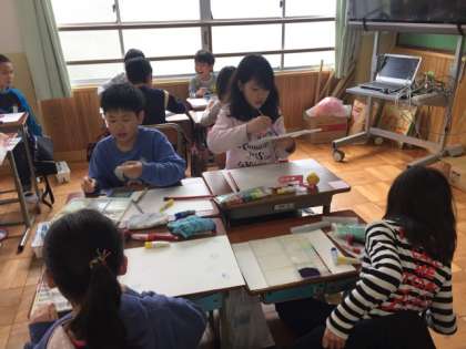 子どもたちは,どんな模様ができるのか楽しみにしながら模様を作っていました。