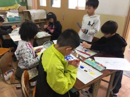 図画工作では「絵の具でゆめもよう」という学習をしています。