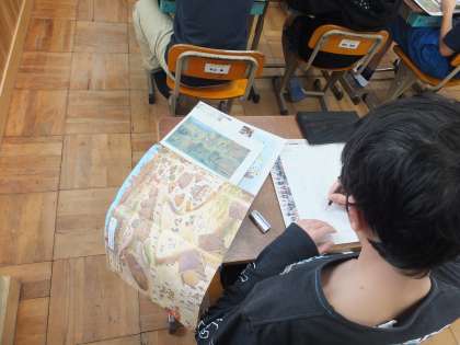 6年生の社会科の学習で,歴史の学習に取り組んでいます。始めは,歴史の年表の見方を確かめ,縄文時代の暮らしを予想して,資料から読み取り,読み取ったことを交流しました。
