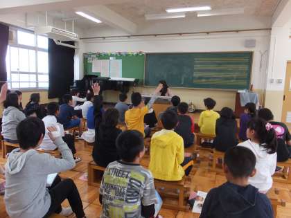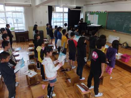 6年生の音楽科の学習が始まりました。6年生になって,音階や記号などの確認をして,記号を意識しながら「つばさをください」を歌いました。クラスが変わって初めての合唱でしたが,みんなきれいな声で歌うことができていました。