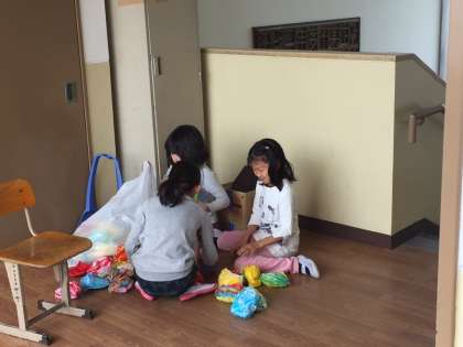 企画代表委員会の4年生は,休み時間にも1年生を迎える会の準備を進めています。