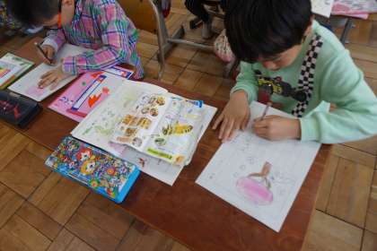 さくらやたんぽぽ,ポピーやてんとう虫など,子どもたちが春を感じるものがたくさん描かれていました。