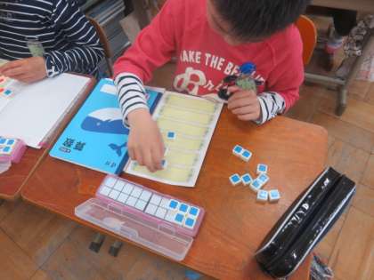 次は,15個のクッキーを同じ数になるように3つに分けました。数図ブロックを操作する活動を通して,分けることの意味を考えました。