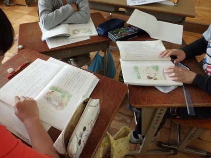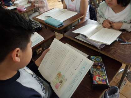 国語科では「なまえつけてよ」という物語を読んでいます。登場人物の行動や会話に着目し,そこから心情を想像しました。友だちと意見を交流することで,考えを広めることができました。