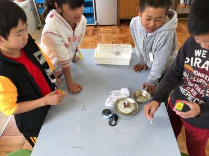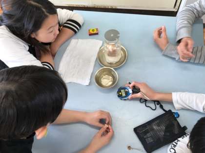理科の「ものの燃えかた」の学習が進んでいます。この日は,物が燃えるにはどういった条件が必要なのかを確かめるために,2つの実験をしました。ビンの中に入れたろうそくが,ふたを開けた状態とふたを閉じた状態とで,燃え続ける時間の違いを比べました。この結果から,分かったことをまとめていきます。