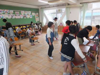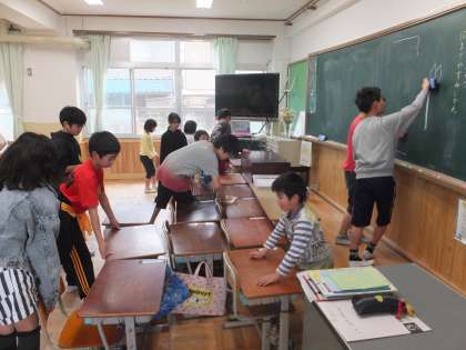 1年生への掃除や給食のお手伝いを続けています。掃除のやり方は,1年生もだんだんと覚えてきて,すすんで取り組むようになっています。優しく,分かりやすく教えることができています。
