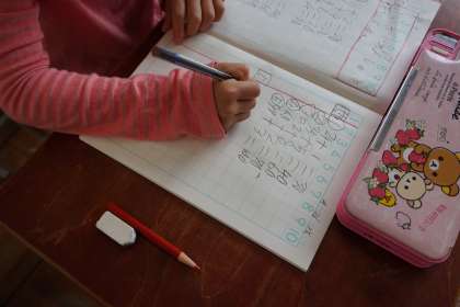 算数では,「たし算とひき算」の学習をしています。17+3など繰り上がりのある計算に取り組んでいます。計算練習では,自分の問題をたくさん考えている子もいました。