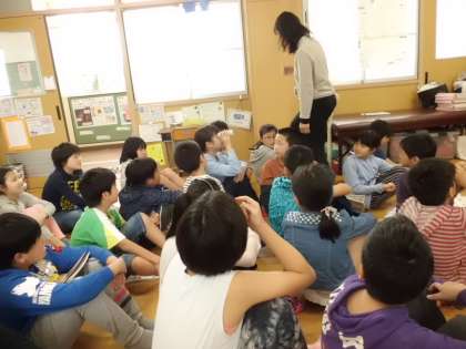 4月25日(火)に視力検査がありました。目を大切にするために,テレビとの距離を考えた子どもたち。トイレットペーパーを使って,適正距離を測れることを知ることができました。