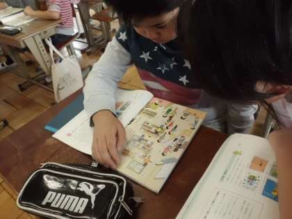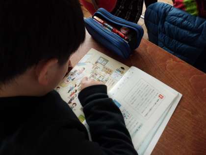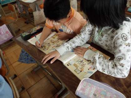国語科では「漢字の広場1」に挑戦。すべての漢字が読めるか,ペアでチェックしていきました。