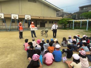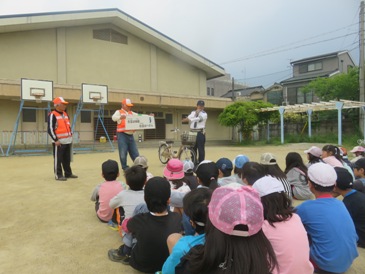 「左足は地面,右足はペダル」という自転車の乗り方を教えていただきました。また,学校にも決まりがありますが,交通ルールを守ろうという話を聞きました。みんなの安全を守る大切なルールです。