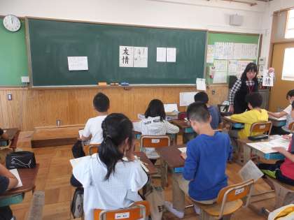 6年生の書写の学習で,友情の字を硬筆で書きました。前回毛筆で工夫して書いたことを生かして,普段の字にも生かしていけるように集中して書きました。