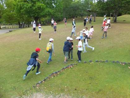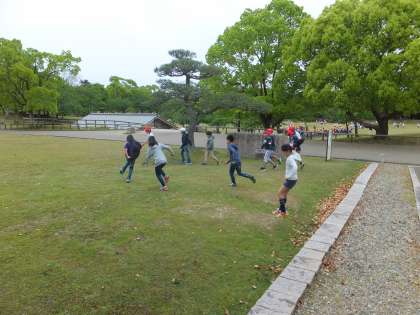 お弁当を食べ終わるころには雨もやみ,芝生でおにごっこをしたり,楽しくおしゃべりをしたり,それぞれの自由時間を過ごしました。