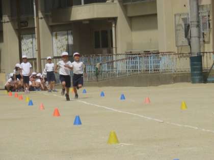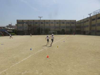 体育の学習で50mのタイムを計測しました。子ども達は50mを力いっぱい駆けぬけていました。