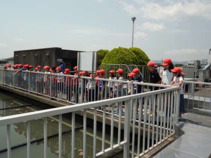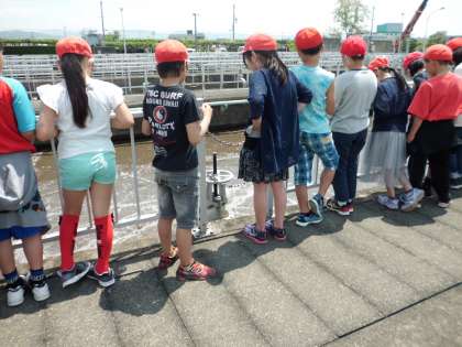 学校から歩いて,鳥羽水環境保全センターに見学に行きました。私たちの使った後の水はこのセンターできれいにされ,川に流されます。職員の方が教えてくださったことを熱心に聞く姿が見られました。