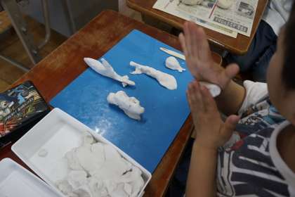 ねんどを握った形から想像を膨らませ,にぎった形を活かしながら作品を作りました。