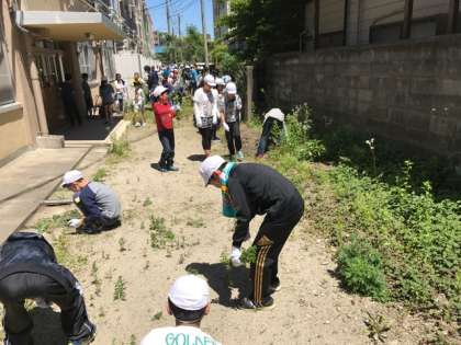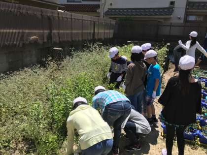 18日(木)ごみゼロの日の取組を行いました。子ども達の頑張りによって,みるみる草が抜かれていきました。集中して作業する様子がとてもよかったです。