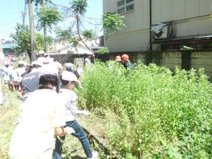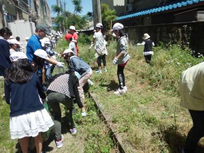 5月18日(木)はごみゼロの日の取組が。5年生は南校舎の裏の花壇を担当。たくさんの雑草をひき,とてもすっきりさせることができました。