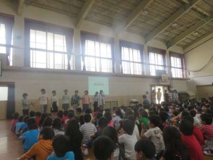 朝会で掲示委員会の発表がありました。掲示委員会の活動の様子を発表してくれました。毎月工夫された掲示をしています。