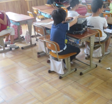 台風がきて,暴風警報が発令された時の緊急下校を想定した避難訓練を行いました。実際に集団原稿する児童,学校に待機する児童に分かれ,実際に発令されたときに自分のどのように避難するのかを学習しました。