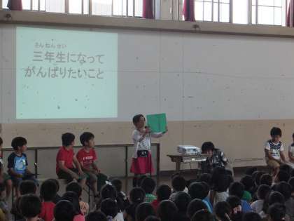 3年生は初めてのリコーダーや,理科・社会などの新しい学習,友だちとのかかわり方など,様々な目標を発表してくれました。6年生も3年生の発表を聞いて,自分たちが3年生だったころの気持ちを思い出していました。
