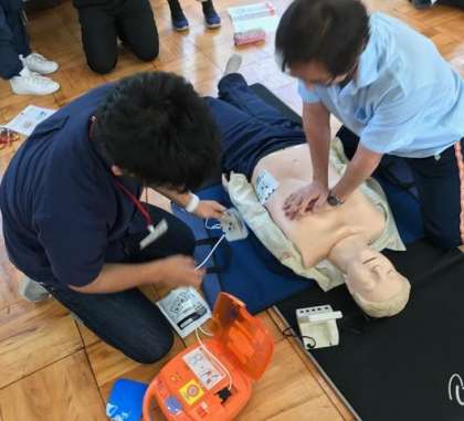南消防署の職員さんに来ていただき,心肺蘇生法やAEDの使い方などの研修を行いました。