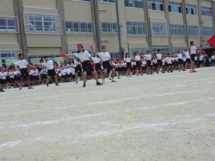 応援団長,副団長をはじめ,5・6年生の応援団の