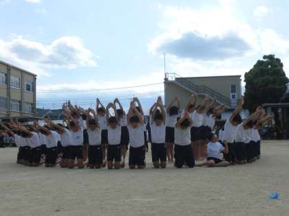 手に書いて臨んだ組体操。